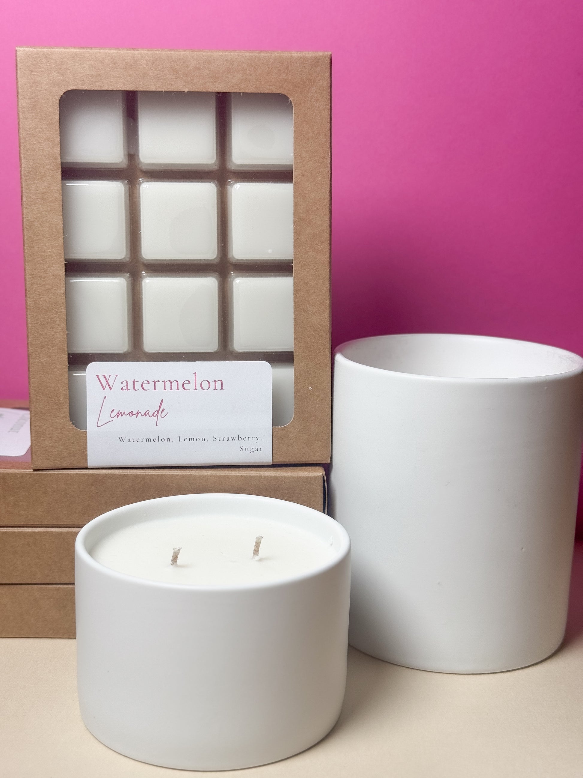 Bright, fruity, and refreshing, this handmade soy candle combines watermelon, lemon, strawberry, and sugar for a sweet, summery scent. Perfect for lifting spirits and brightening any space.